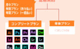 Photoshop・Premiere Pro・After Effectsなど他アドビソフトの通常版は単体プランでも購入できますが、アカデミック版はIllustrator単体・フォトプラン(LightroomとPhotoshop)コンプリートプランの3つのプランになります。