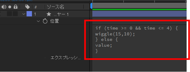 wiggleさせたいレイヤーの位置エクスプレッションにコードを入力