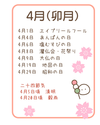 ここでは4月の日本の行事と二十四節気をまとめています。