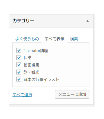 から追加したいカテゴリーにチェックをいれてメニューに追加!