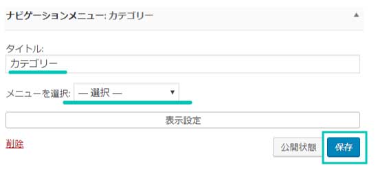 プルダウンメニューで先ほど作った名前(category)が出てくるはずなので選んで保存