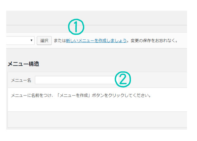 ②メニューに名前をつけてメニュー作成ボタンをクリックします。