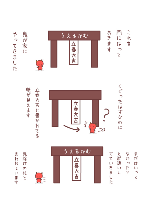 このお札を門に貼っておくと入ってきた鬼が振り返って裏からお札を見たとき