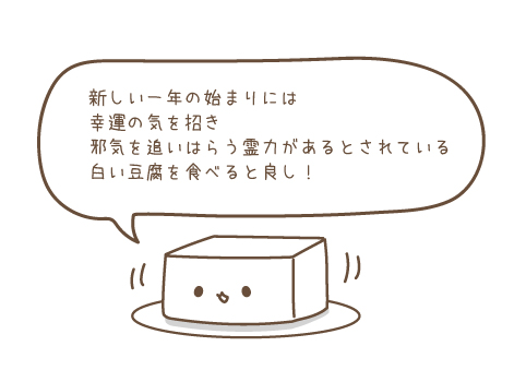 邪気を追い祓う霊力があるとされている 白い豆腐を食べると良いとされています。