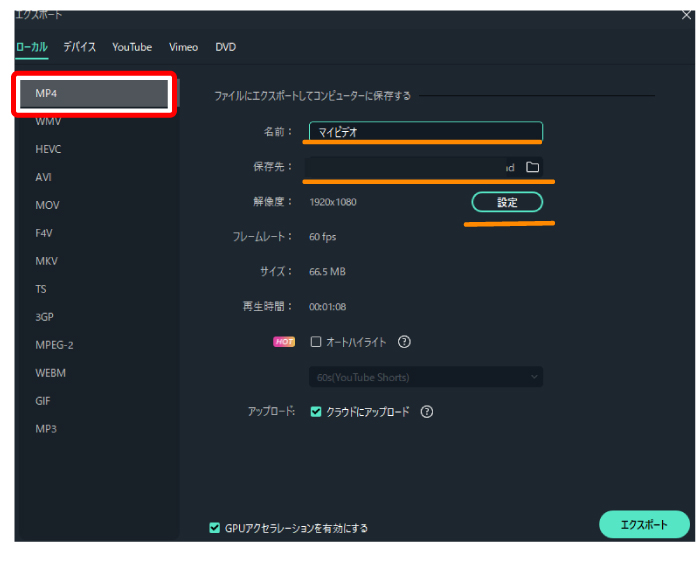 Filmora 11(フィモーラ)で動画を編集したら最後に出力して完成です。