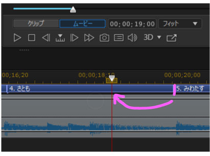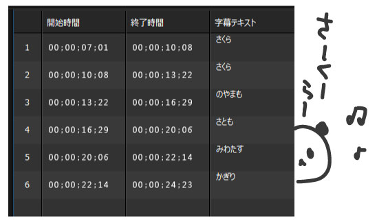 例えば5の「みわたす」の字幕が少し遅れてしまっていた場合、字幕をいれたいタイミングぴったりのところで一時停止。