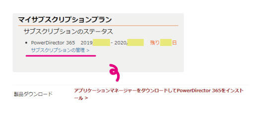 「アプリケーションマネージャーをダウンロードしてPowerDirector 365をインストール 」をクリック