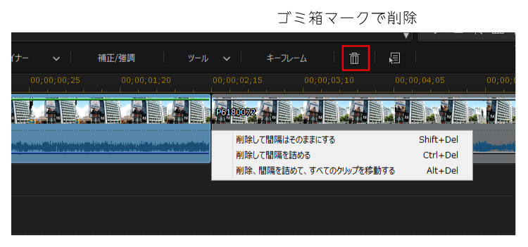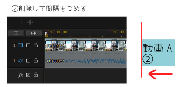 - 削除して間隔をつめて、すべてのクリップを移動する