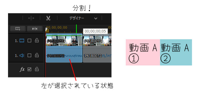 ②「選択したクリップを分割」をクリック。