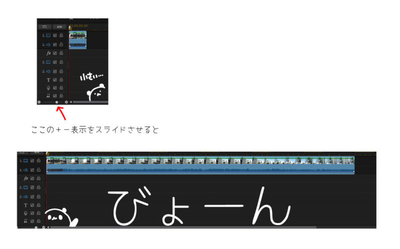 タイムライン上の動画を編集しやすいように拡大縮小表示させる方法