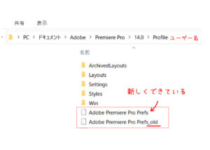 場所 ドキュメント→Adobe→Premiere Pro→バージョン→Profile-ユーザー名