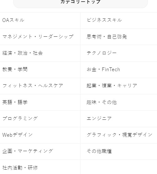 カテゴリーはビジネススキル・WEB・IT・デザイン・起業・副業から