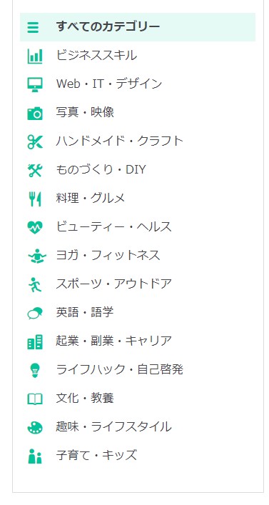 ビジネススキルからデザイン・プログラミング・マーケティング・フィットネス・英語・語学と様々。