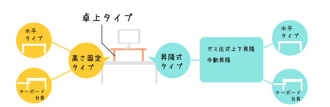卓状タイプにも高さ固定タイプと昇降式タイプがあります。