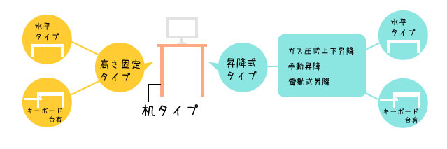 高さ固定タイプと昇降式タイプがあります。